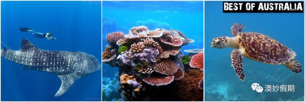 英国广播公司的自然纪录片 《行星地球》曾拍在这里拍摄 并摄到一条鲸鲨 正在捕食一群小型鱼类。 巨型鲸鲨 那粗糙皮肤上的复杂图案、 摇摆巨型尾巴的迷人身姿 和如吸尘器一样的大嘴。 不过别担心, 鲸鲨是个素食主义者, 对人类完全无害, 所以你能放心 和他们同游~ (切记用手摸是不行的哦!) 与此同时,在宁格鲁潜水 还可以看到比大堡礁更加美丽的珊瑚 以及海龟、蝠鲼等等海洋生物 是不是已经坐不住了? 是不是也想 抛开一切 奔向大海的怀抱! 2018年澳妙假期独家 《宁格鲁鲸鲨戏水——珊瑚海岸探秘之旅》 开始预售! 行程靓点