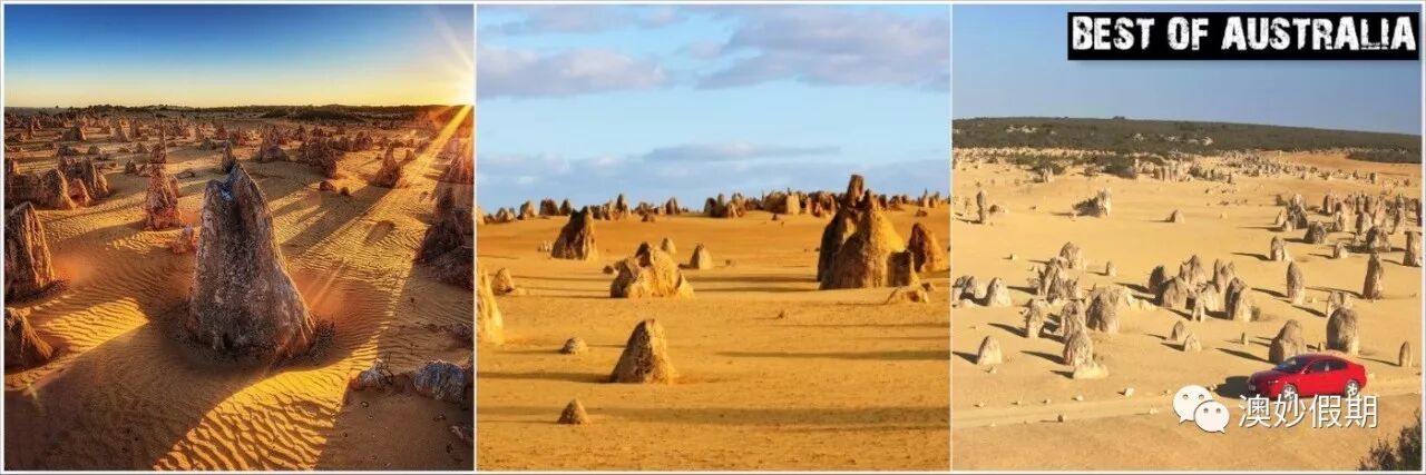 如月球表面般的尖峰石阵(Pinnacles)构成澳大利亚最独特和迷人的自然景观之一。 经过数百万年自然作用形成的数千个千奇百状的高大石灰岩尖塔屹立于黄色的沙漠之上。