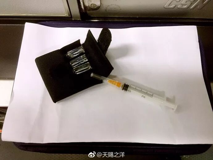 轮休的机长也来到孩子身边,了解确认孩子的病情状况。乘务组拿来应急医疗箱取出肾上腺素并做好所有记录和填写所有所需单据。
