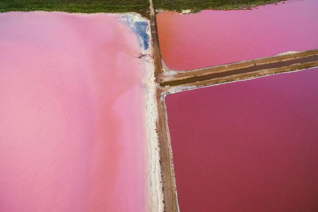 粉红湖Hutt Lagoon赫特泻湖紧邻格雷戈里港 (Port Gregory),是一个盐湖,长14公里,宽2.3公里,湖水中富含可产生胡萝卜素的杜氏盐藻,在特定的气候条件下呈现出迷人的粉红色。