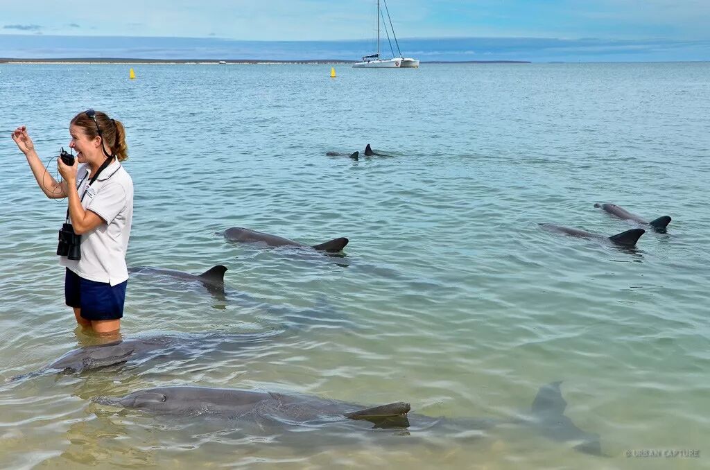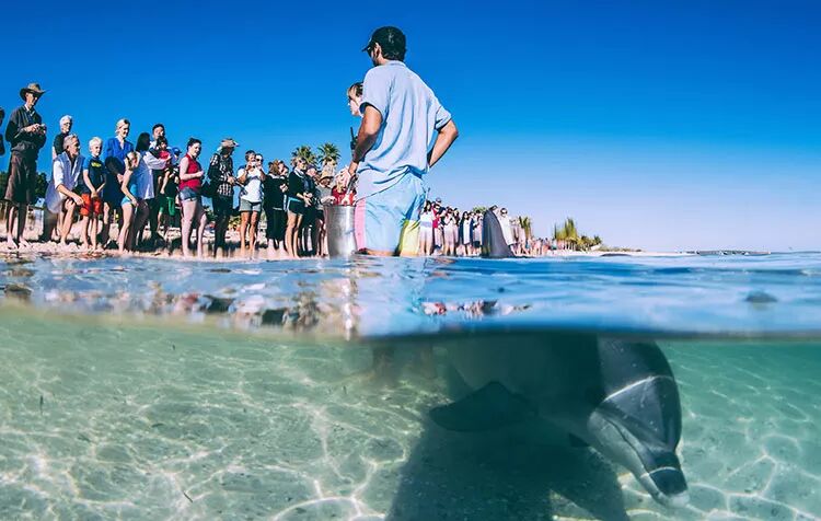 猴子米亚(Monkey Mia)位于鲨鱼湾世界遗产区(Shark Bay World Heritage area),是澳大利亚西海岸的著名地标性景点,世界上首屈一指的天然海豚风景区。它距离德纳姆(Denham)24公里。在这里游客可以和海豚有最近距离的接触,那里的海豚几乎每日都会游至岸边与人类亲密互动,每天都有野生海豚在浅水区大量出现等待喂食,这个地方可是每天都可以看到海豚,而不像其他地方是季节性的,该地也因此闻名于世。