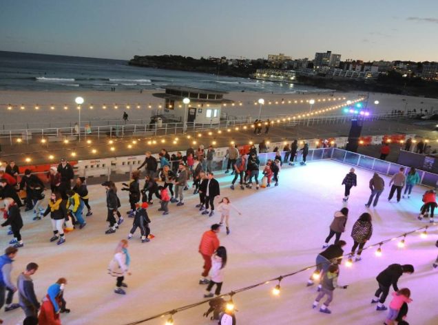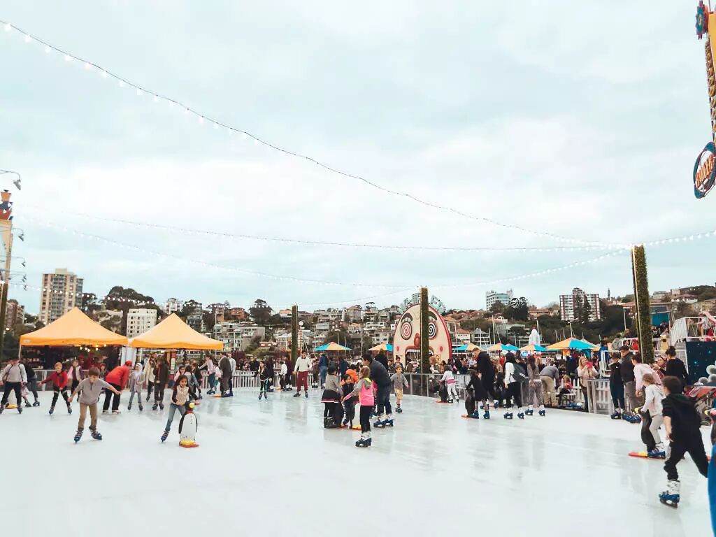 Bondi海滩Bondi Winter Magic Festival举办的如火如荼,室外滑雪场上到处都是体验的人群。