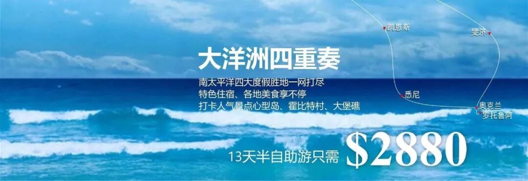 大洋洲四重奏!斐济、新西兰、悉尼和凯恩斯串起来玩!人气景点和或松或紧行程完美结合!发布日期:2018-07-13