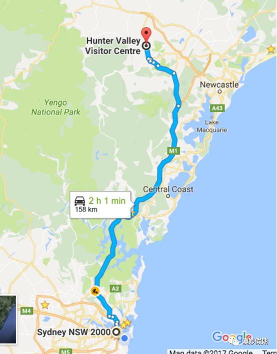 如果以悉尼为出发点,一般早上9点钟出发比较合适。抵达猎人谷的路程,仅需2小时左右。出悉尼后沿M1太平洋公路(Pacific Motorway)左转B82号路Freemans Dr至猎人谷游客服务中心;