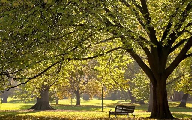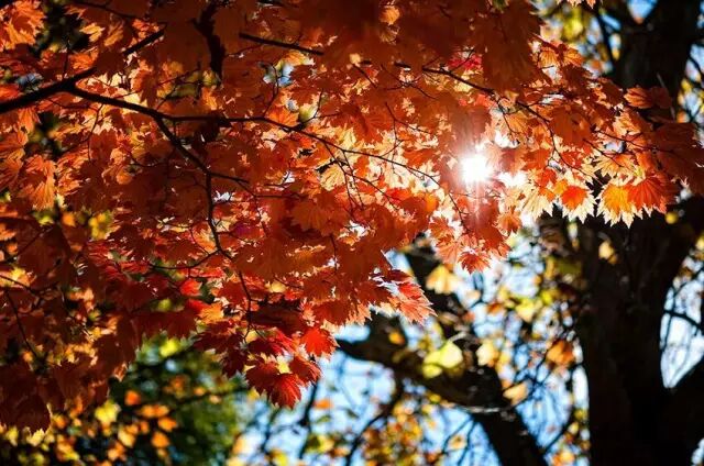 金色的梧桐叶,鲜红的枫叶,空气清新,鸟语花香。