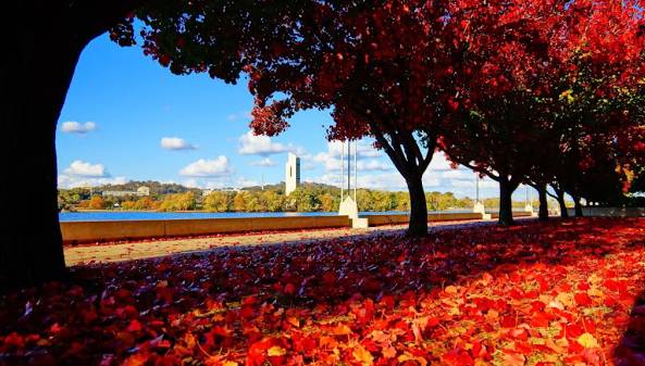 四月,澳大利亚首府堪培拉,被大自然披上了一层斑斓的秋之色彩,金秋在这里呈现出了自己本身的色彩。